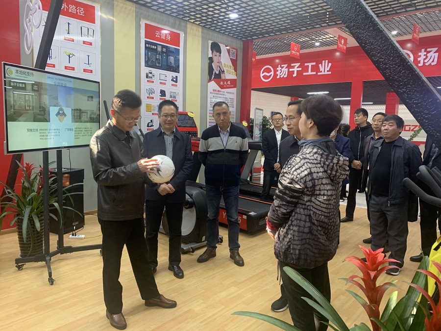 陸峰一行參觀了揚子產品展示中心,實地查看了揚子體育產品,聽取安徽揚子嘉寶體育用品有限公司負責人對相關工作及企業生產、銷售情況的介紹,并提出了具體建議和要求。